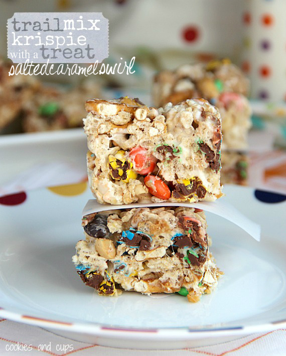 Meet Trail Mix Krispie Treats with a Salted Caramel Swirl.